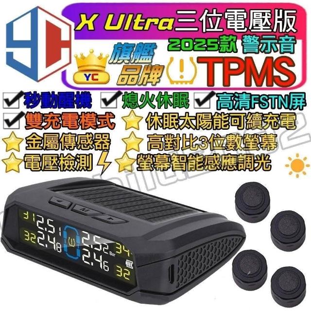 YUNCHI 2025年Ultra 3位數電壓版 警示音 彩色 胎壓偵測器 無線胎壓偵測器TPMS