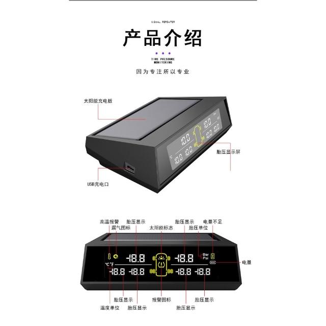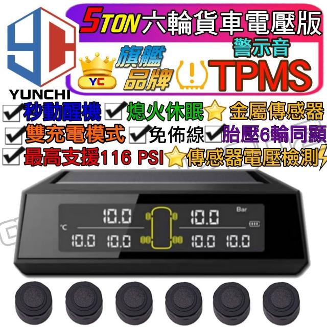 YUNCHI 無線太陽能6輪5噸貨車胎壓偵測器 電壓 檢測 最高支援116psi TPMS