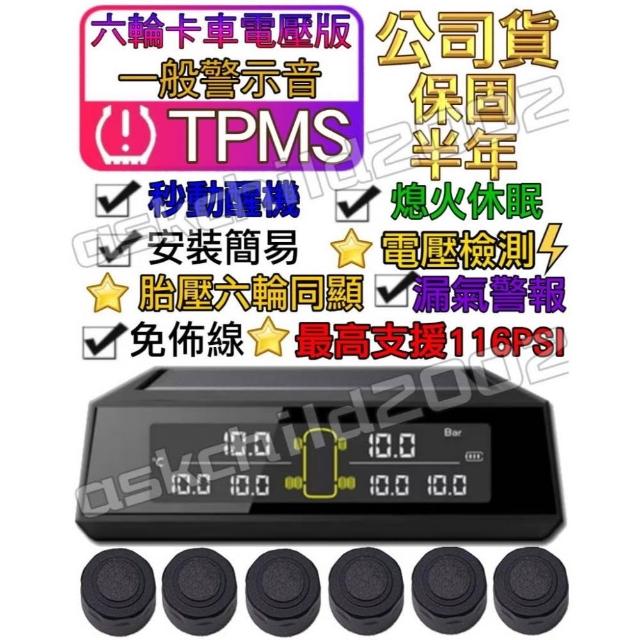 YUNCHI 無線太陽能6輪5噸貨車胎壓偵測器 電壓 檢測 最高支援116psi TPMS