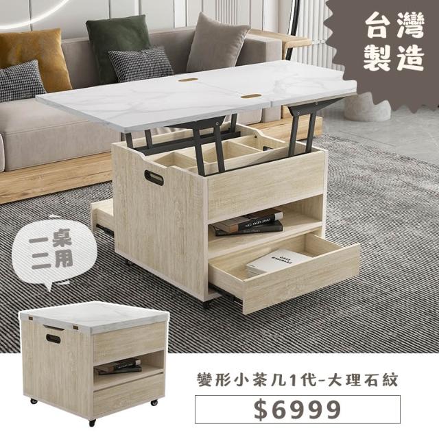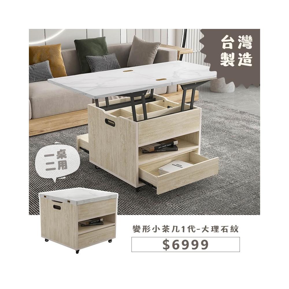 木匠先生大理石紋升降變形小茶几|MIT收納小茶几 經典款 桃園工廠製