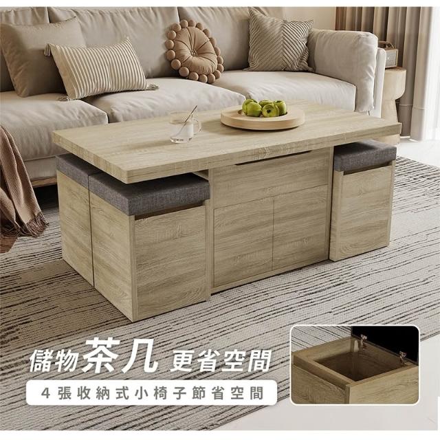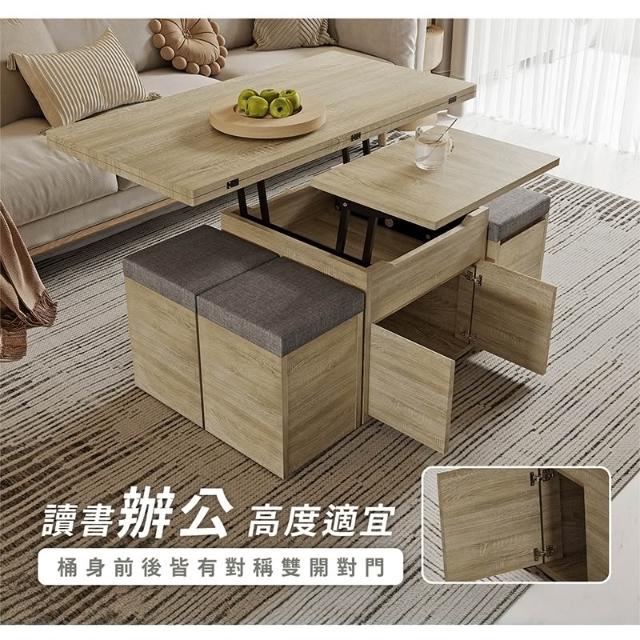 木匠先生變形升降大茶几|一桌四椅 梧桐色 多功能設計 MIT製造