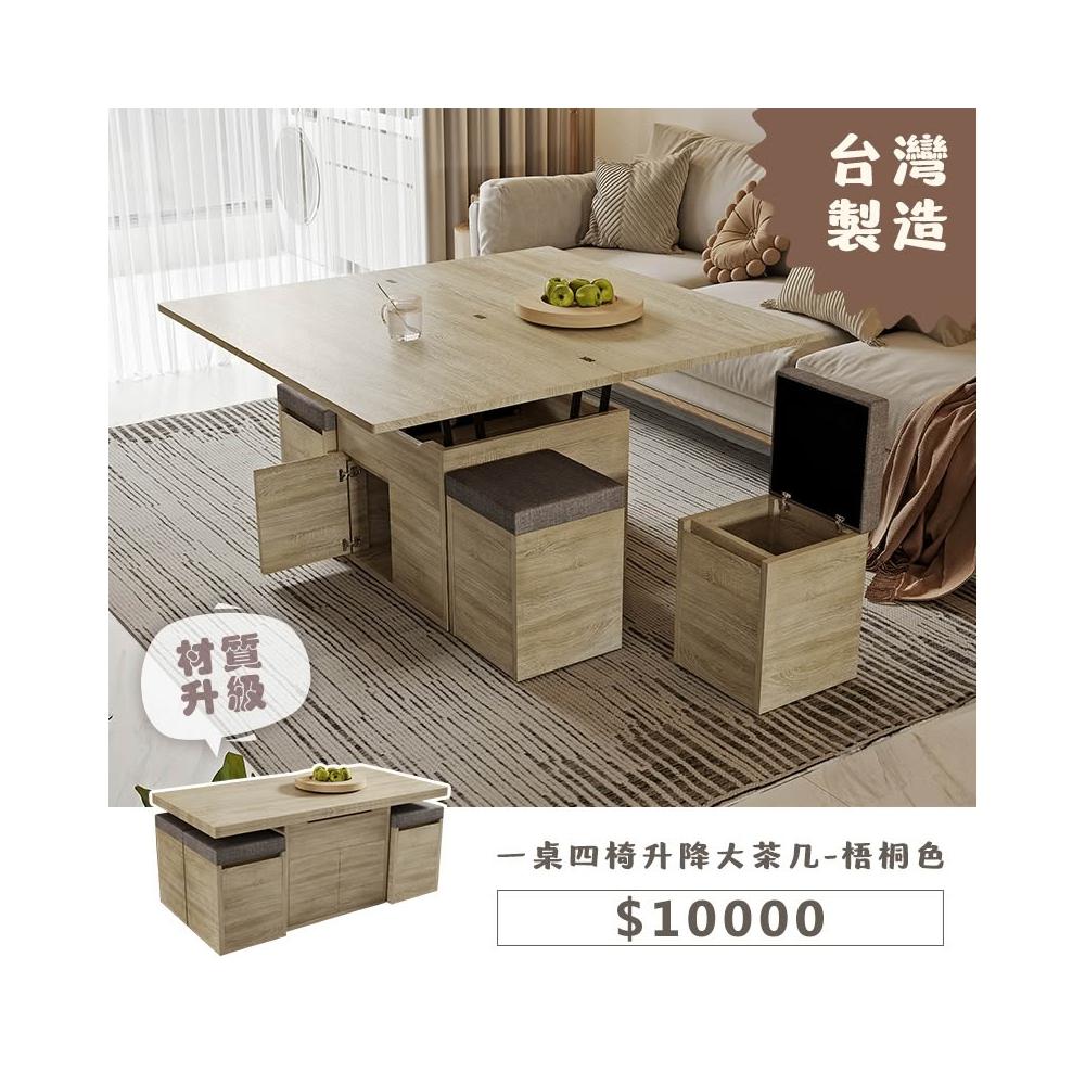 木匠先生變形升降大茶几|一桌四椅 梧桐色 多功能設計 MIT製造