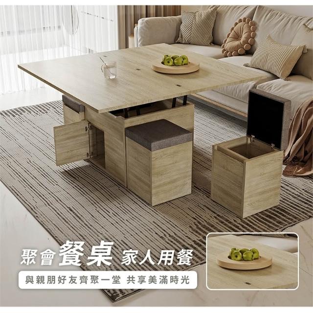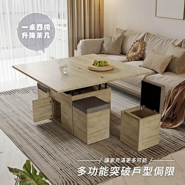 木匠先生變形升降大茶几|一桌四椅 梧桐色 多功能設計 MIT製造