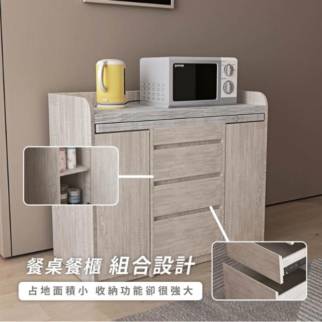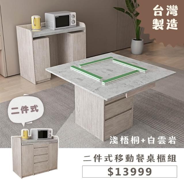 木匠先生二件式移動餐桌櫃組|可折疊 餐櫃+移動餐桌 二合一設計 淺梧桐+白雲岩 MIT製造