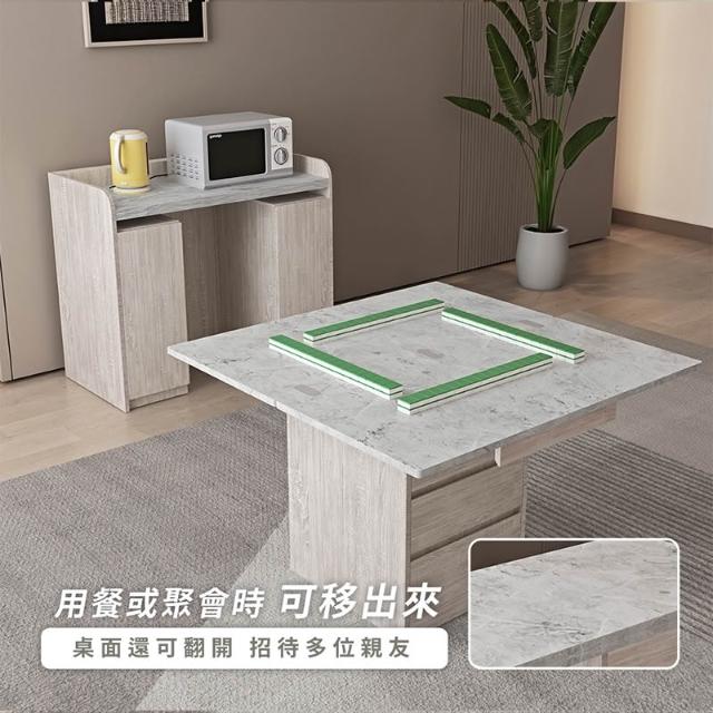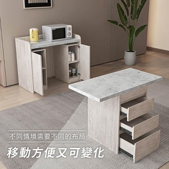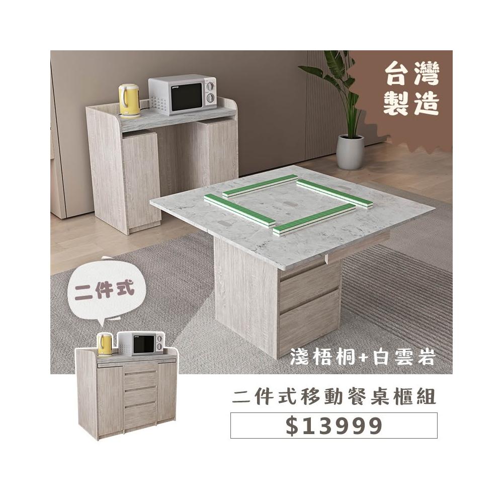 木匠先生二件式移動餐桌櫃組|可折疊 餐櫃+移動餐桌 二合一設計 淺梧桐+白雲岩 MIT製造