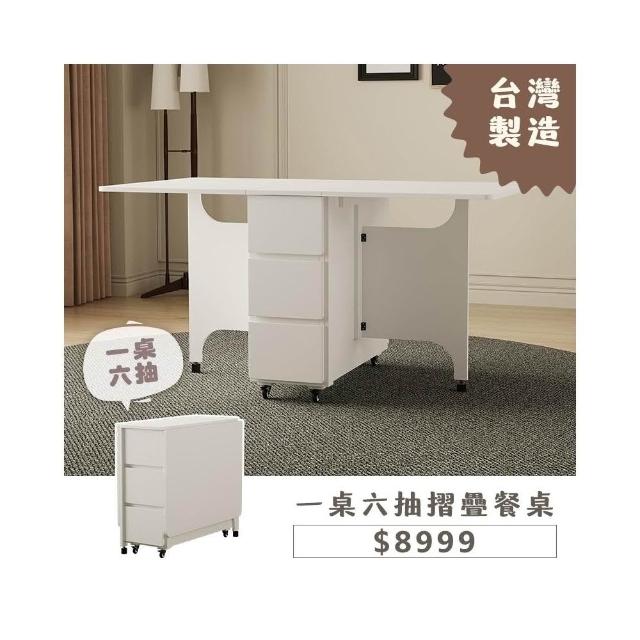 木匠先生六抽摺疊餐桌組|變形設計+可移動 秒變邊櫃|MIT製造 小宅必備
