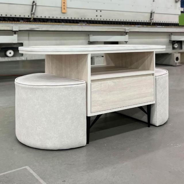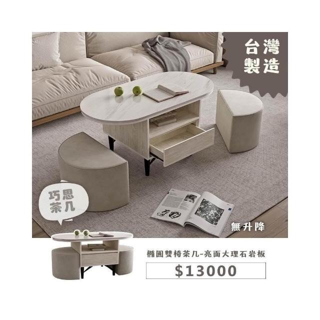 木匠先生橢圓亮面岩板茶几椅組|大理石紋圓桌+雙椅|客廳桌椅組(無升降) MIT製造
