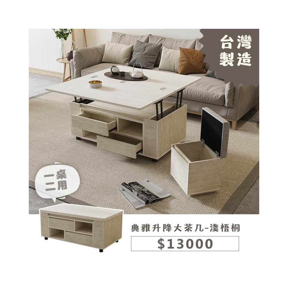 木匠先生多功能升降茶几|淺梧桐木紋大桌面設計|MIT台灣製造 小宅首選