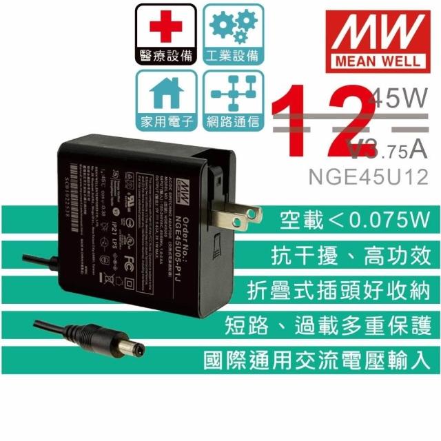 MEAN WELL明緯 12V 3.75A NGE45U 醫療級 變壓器 醫美 數位相機 音響 家電 電源 適配器