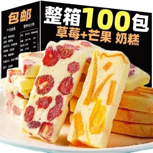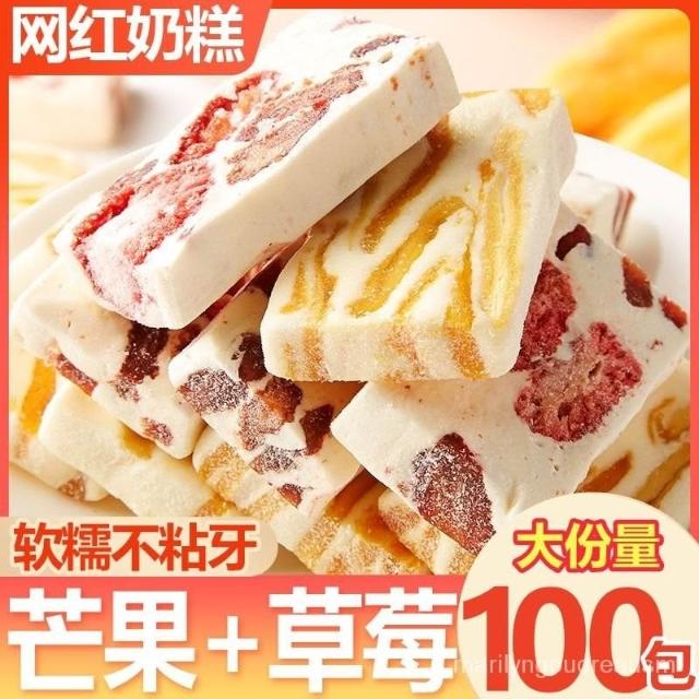 網紅草莓芒果之戀奶糕芒果幹牛軋軟糖零食批髮一整箱