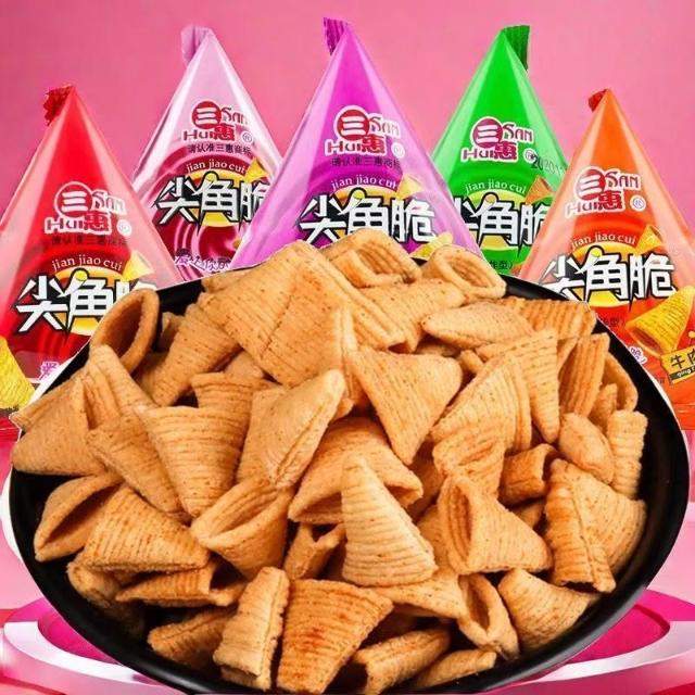 3种口味200克三惠尖角脆妙脆角三角酥锅巴膨化休闲零食大礼包