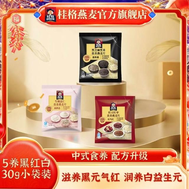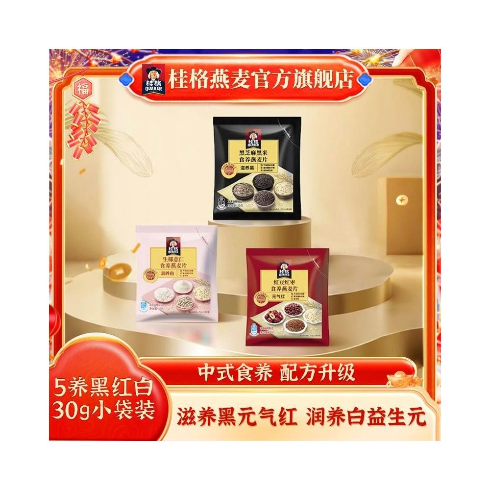 娟娟甄選【桂格】5养燕麦黑米红豆生椰30g*20/40小袋即食谷物麦片营养早餐