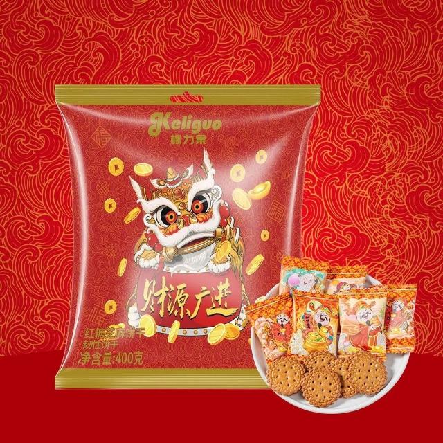 品質優選+棵力果五福財神紅糖芝麻小圓餅乾獨立小包裝過新年貨散裝零食
