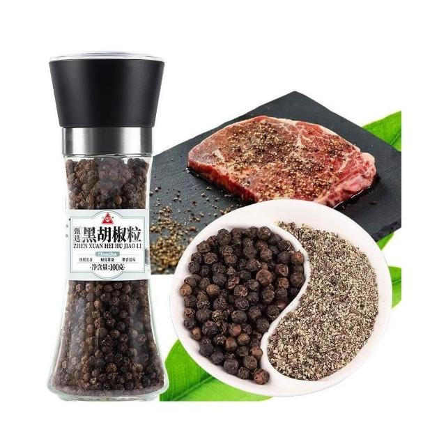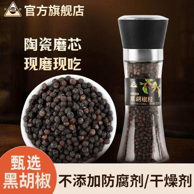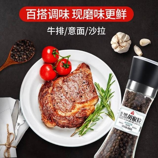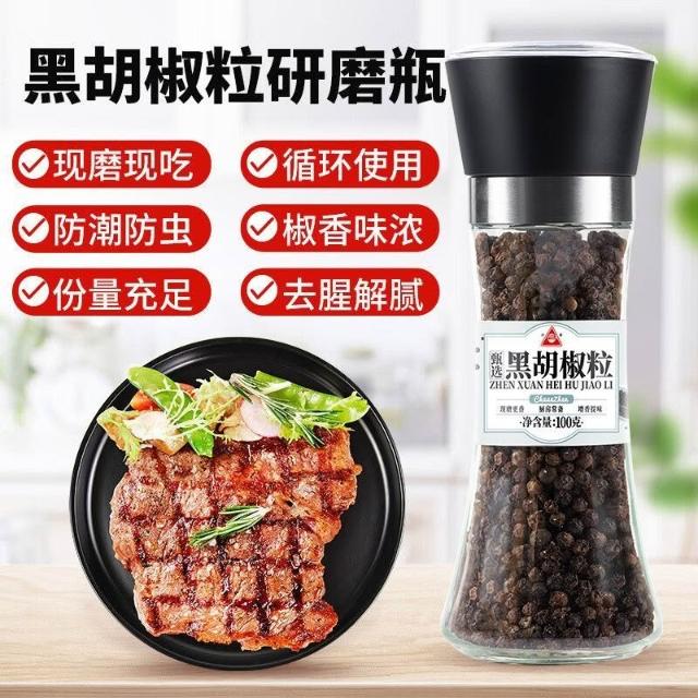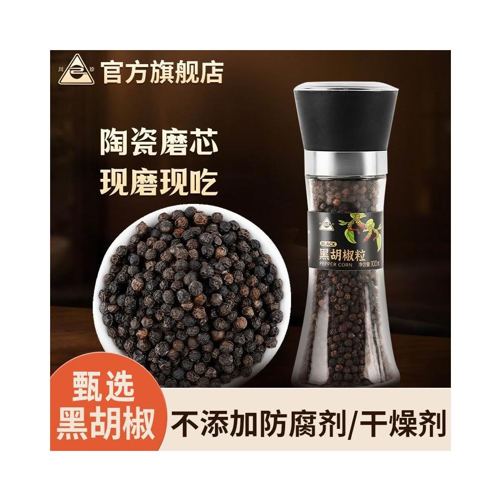川珍黑胡椒粒带研磨器现磨黑胡椒粉调料牛排烧烤家用