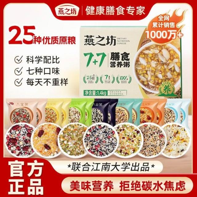 高品質【燕之坊】杂粮粥独立包装家庭早餐八宝粥五谷杂粮粥7+7营养粥1.4kg