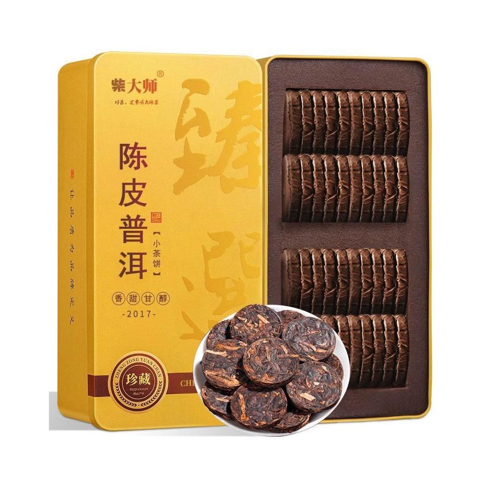 高品質柴大师陈皮普洱老班章古树熟普新会陈皮普洱茶熟茶小沱茶饼礼盒装