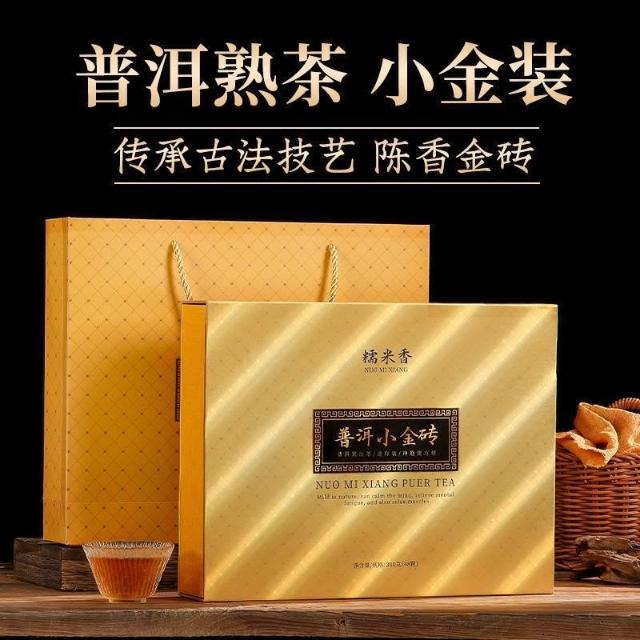 高品質佳节送礼糯香味普洱茶小金砖勐海浓香味型陈年熟茶礼盒装茶叶