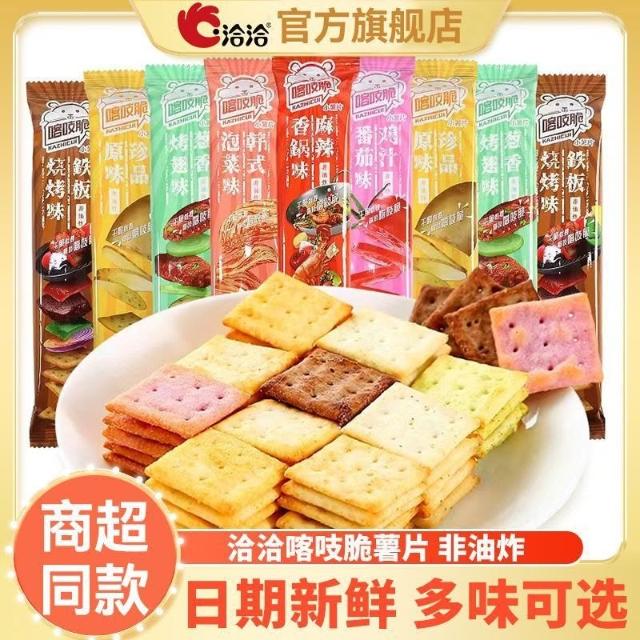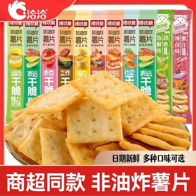 品質優選+洽洽喀吱脆薯片非油炸35g燒烤番茄味薄脆餅乾網...