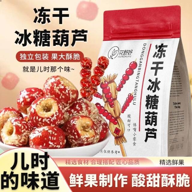 品質優選+凍乾冰糖葫蘆老北京空心山楂球山楂幹網紅休閒兒童零食水果茶果粒