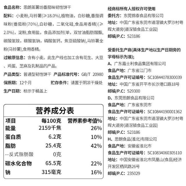 心心相印 思朗蒸薯坊原滋味番茄味韌性餅幹香薄脆薯片小零食無糖食膳餅幹