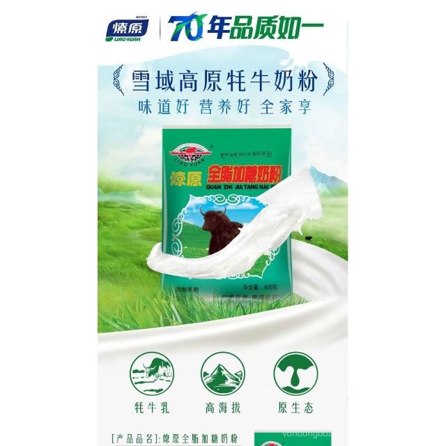 心心相印 【超2韆迴頭客】燎原全脂加糖氂牛奶粉清真青少年中老年成人奶粉學生牛奶400g袋裝