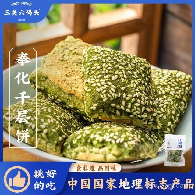 心心相印 三關六碼頭奉化韆層餅180g寧波特産海苔餅休閒零食香脆傳統酥餅