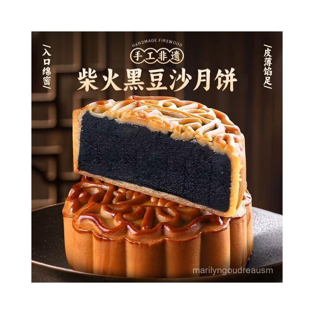 柴火黑豆沙月餅手工筒裝陳皮豆沙傳統老式廣式月餅特産小喫零食品