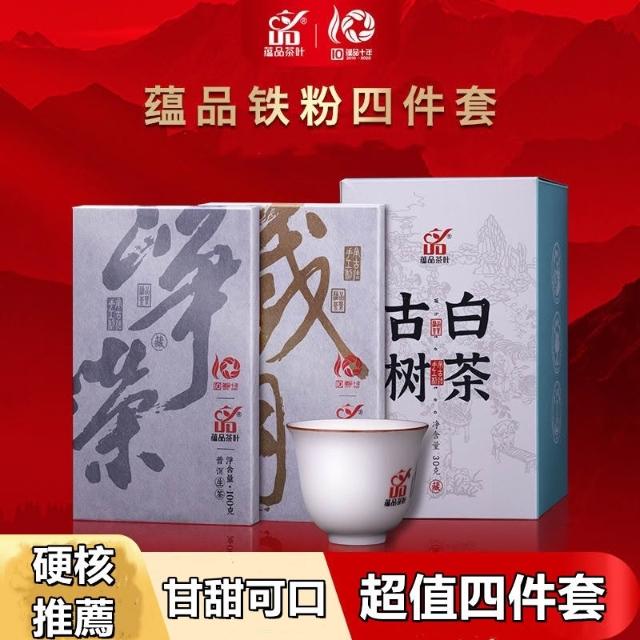 精選優選 蘊品茶葉 鐵粉4件套 普洱茶生茶熟茶磚茶白茶主人杯 高端茶葉 送禮茶葉