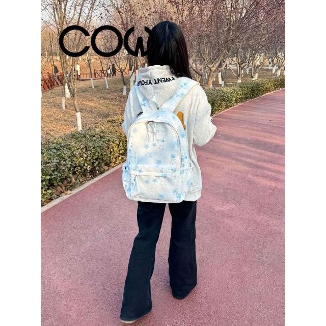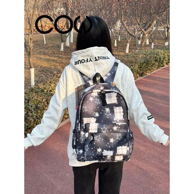 COW通用潮流ins暈染星星少女雙肩包超輕初高中學生書包大容量揹包