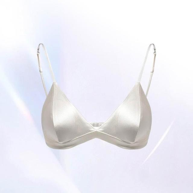 內衣女夏薄款法式內衣細肩帶內衣文胸大胸顯小薄款桑蠶絲真絲內衣