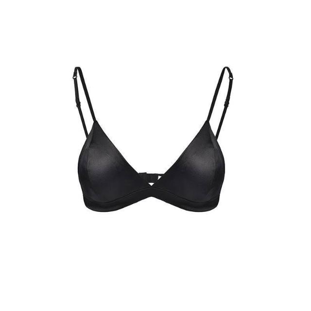 內衣女夏薄款法式內衣細肩帶內衣文胸大胸顯小薄款桑蠶絲真絲內衣