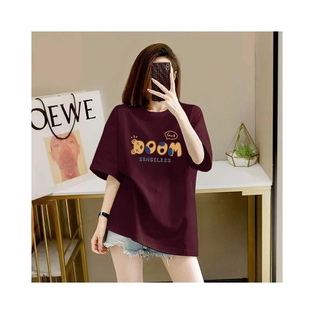 100%純棉短袖t恤女2025新款夏季oversize寬鬆印花顯瘦中長款上衣