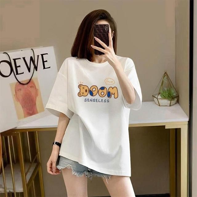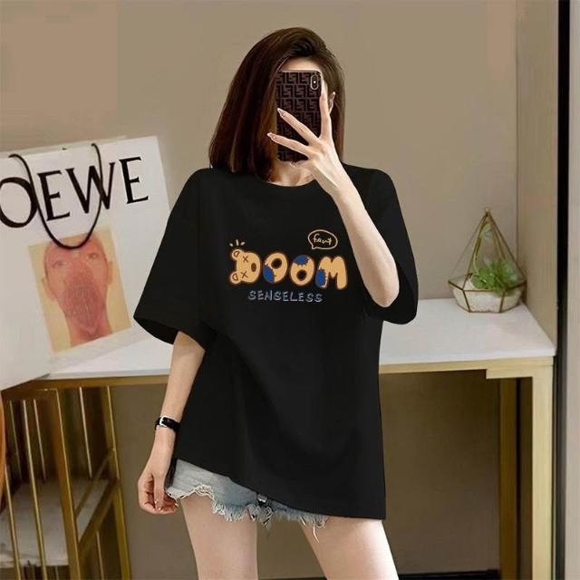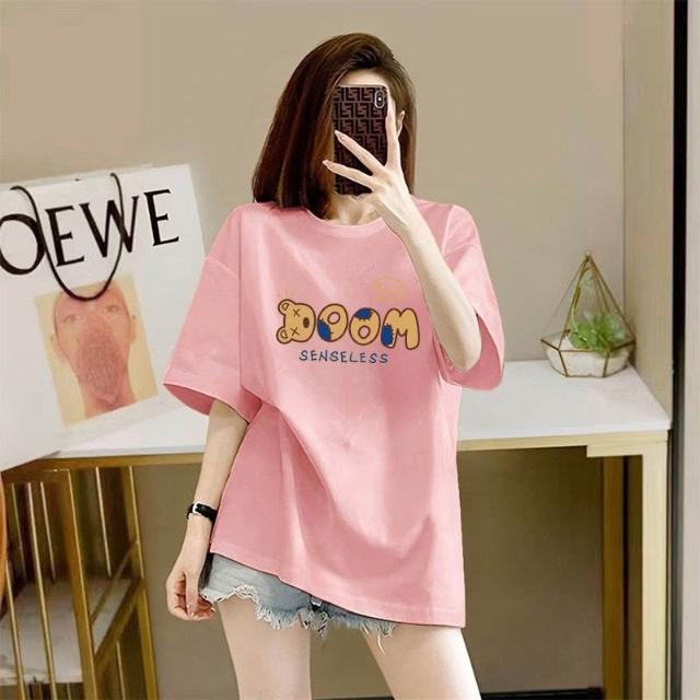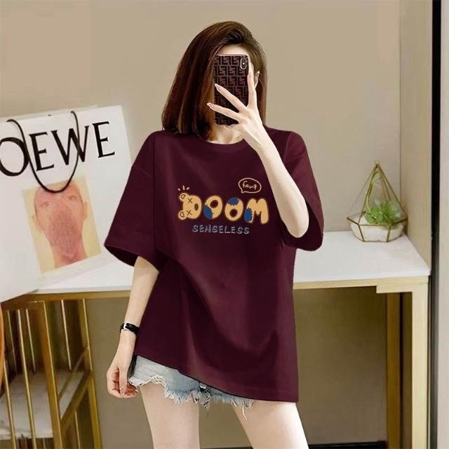 100%純棉短袖t恤女2025新款夏季oversize寬鬆印花顯瘦中長款上衣