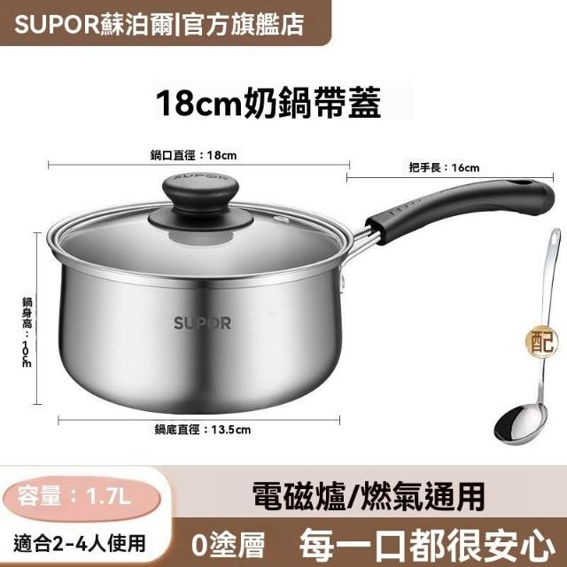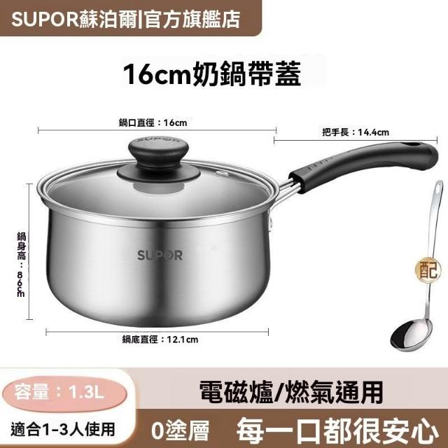 蘇泊爾]不鏽鋼奶鍋食品級湯鍋寶寶專用鍋輔食鍋小奶鍋家用不粘蒸鍋
