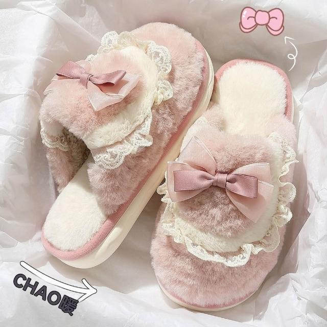 蝴蝶結棉拖鞋女款秋冬季2025新款室內家居防滑保暖毛絨月子棉鞋女