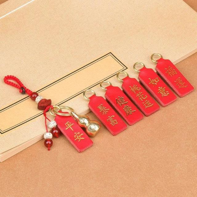 硃砂真皮平安牌鑰匙扣汽車掛件黃銅葫蘆貔貅五帝錢編織繩掛鏈飾品
