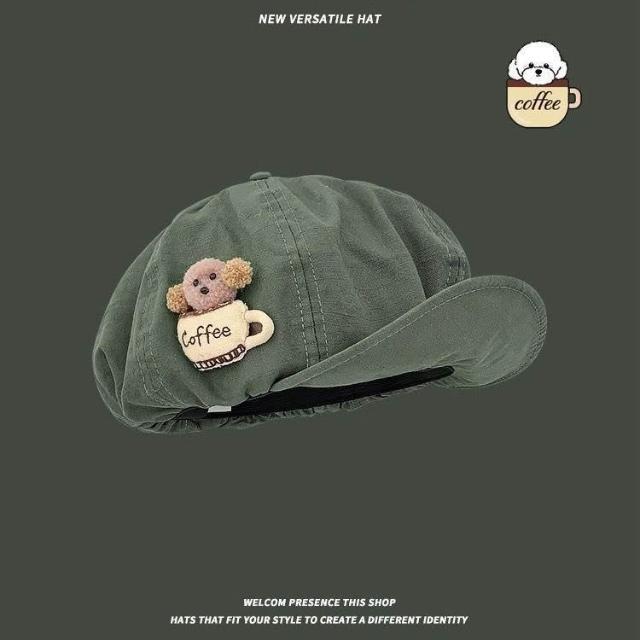 日系小狗鴨舌帽子女春夏季遮陽可愛雲朵畫家帽大頭圍顯臉小貝雷帽