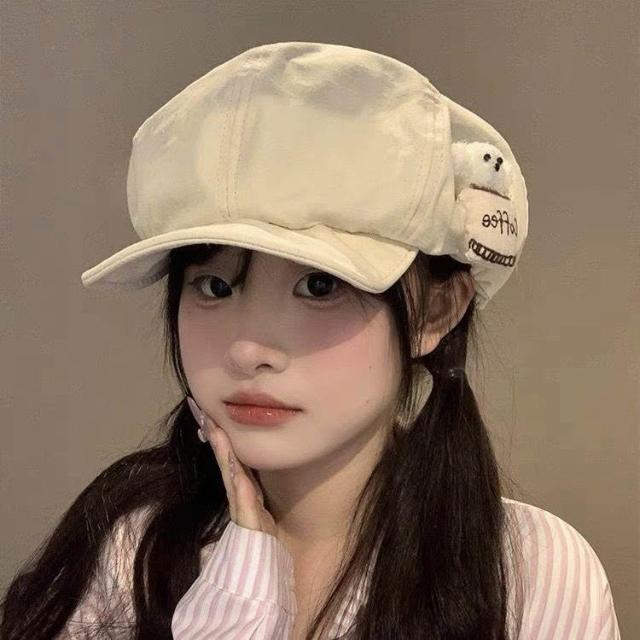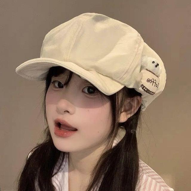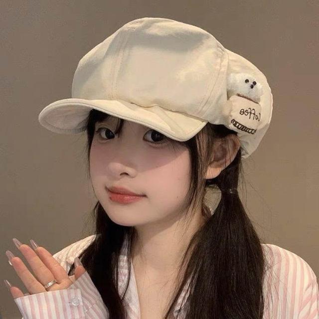 日系小狗鴨舌帽子女春夏季遮陽可愛雲朵畫家帽大頭圍顯臉小貝雷帽