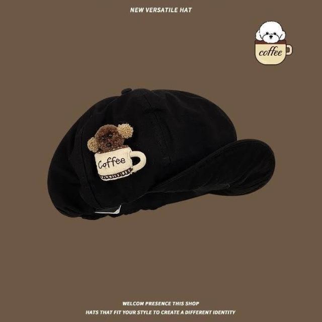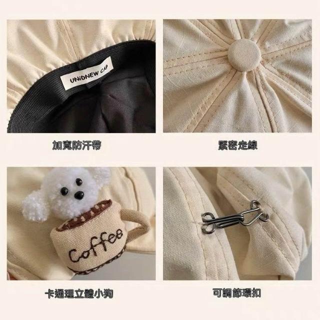 日系小狗鴨舌帽子女春夏季遮陽可愛雲朵畫家帽大頭圍顯臉小貝雷帽