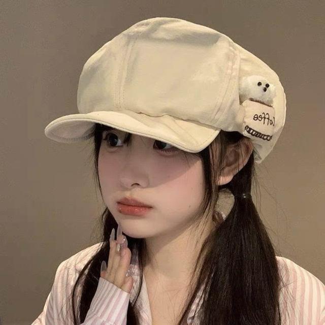 日系小狗鴨舌帽子女春夏季遮陽可愛雲朵畫家帽大頭圍顯臉小貝雷帽