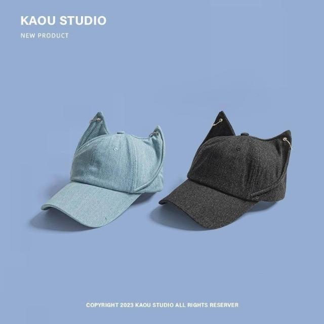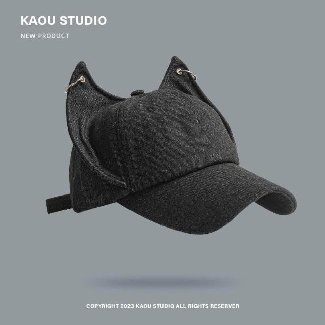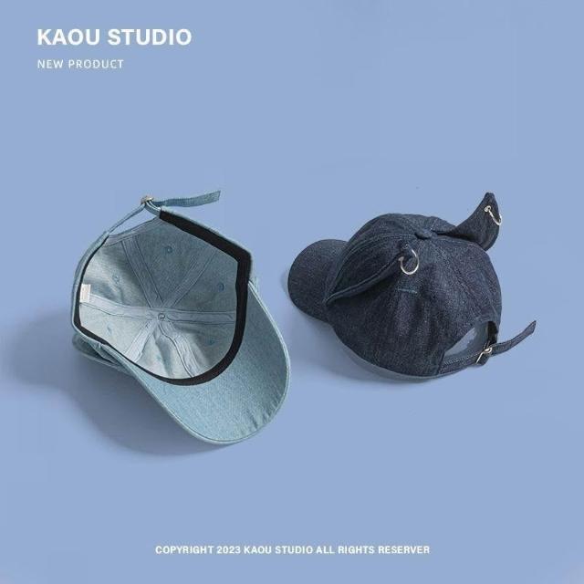 設計師小衆可愛狐狸耳朵鴨舌帽子女個性韓版y2k牛仔辣妹風棒球帽