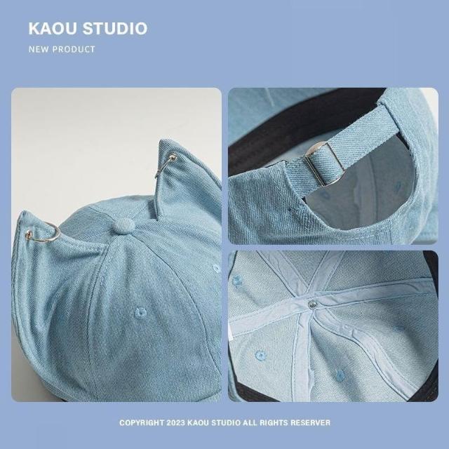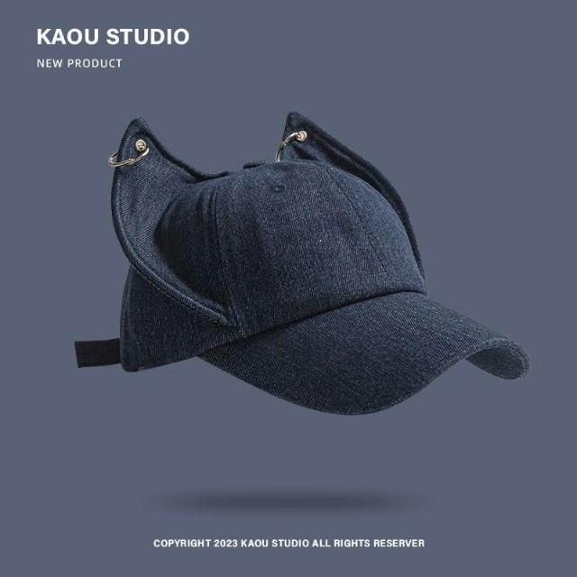設計師小衆可愛狐狸耳朵鴨舌帽子女個性韓版y2k牛仔辣妹風棒球帽