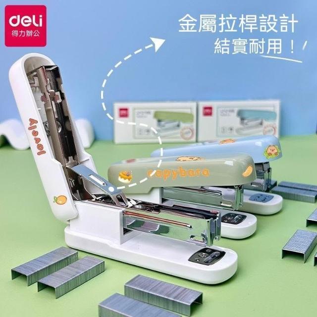 得力省力款訂書機馬卡龍色學生家用大號裝訂機訂書器高顏值辦公用