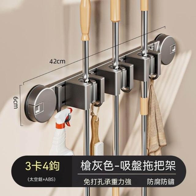 陶市吸盤拖把夾壁掛式拖把架浴室門後免打孔掛掃把掛鉤置物架收納