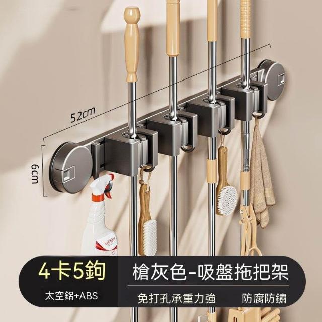 陶市吸盤拖把夾壁掛式拖把架浴室門後免打孔掛掃把掛鉤置物架收納