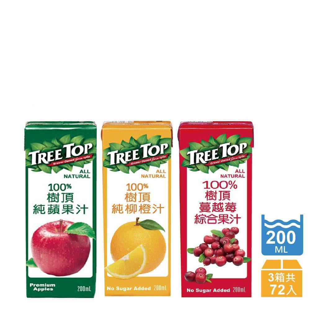 Tree Top 樹頂《Treetop》 樹頂100%蘋果汁/柳橙/蔓越莓200ml (三種各一箱/共72瓶)