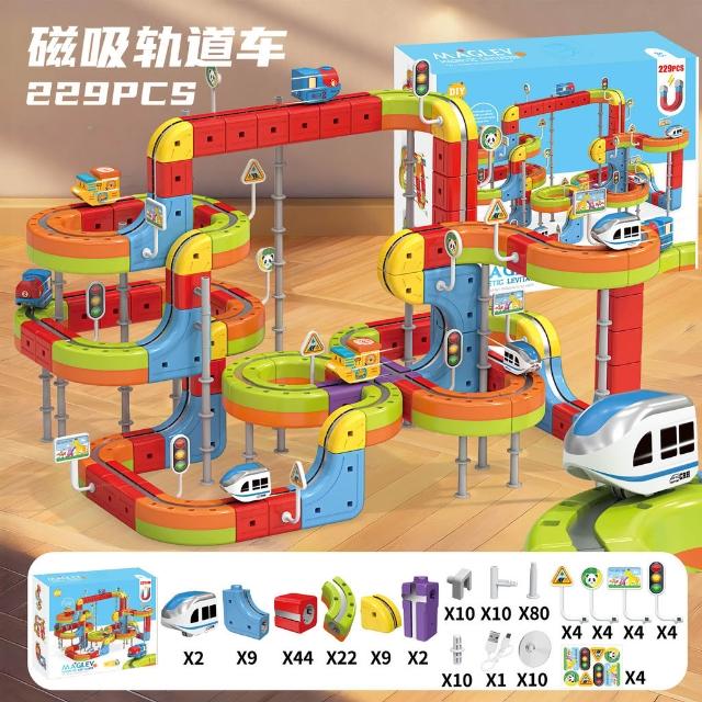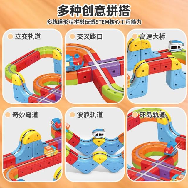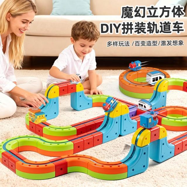 百變魔幻軌道立方體磁力積木軌道車電動反重力磁吸高鐵軌道小火車