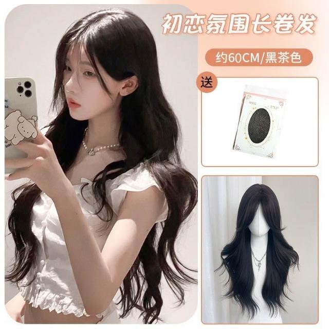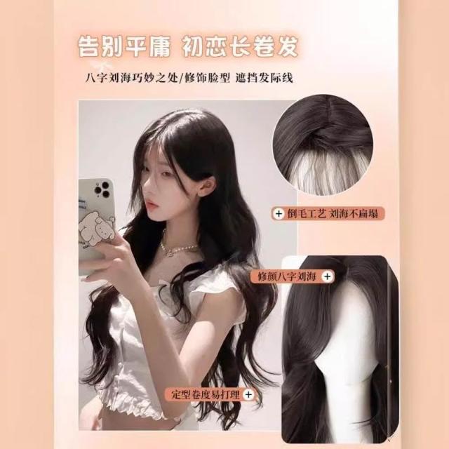 假髮女長髮模擬髮全真人發八字瀏海長捲髮中分大波浪假髮全頭套女