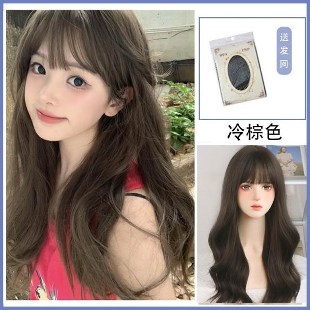 假髮女長髮模擬髮全真人發八字瀏海長捲髮中分大波浪假髮全頭套女