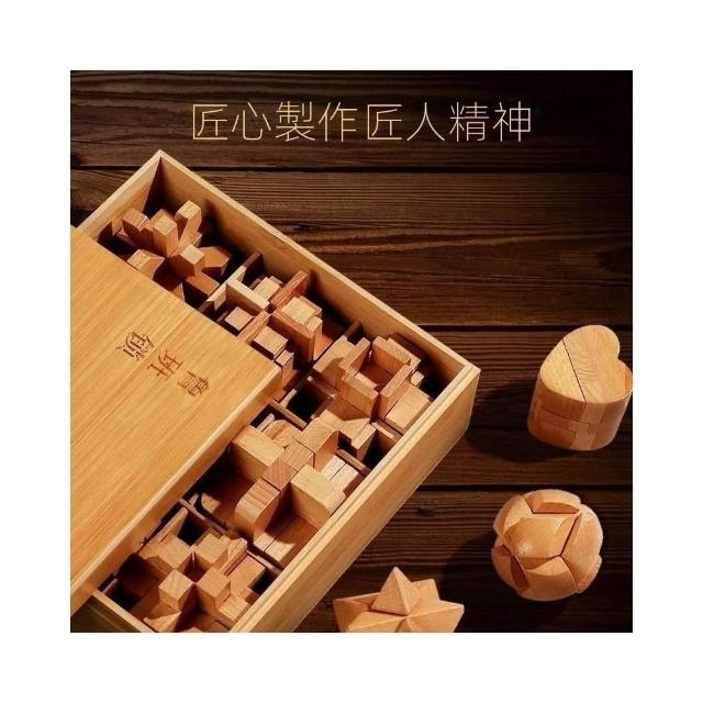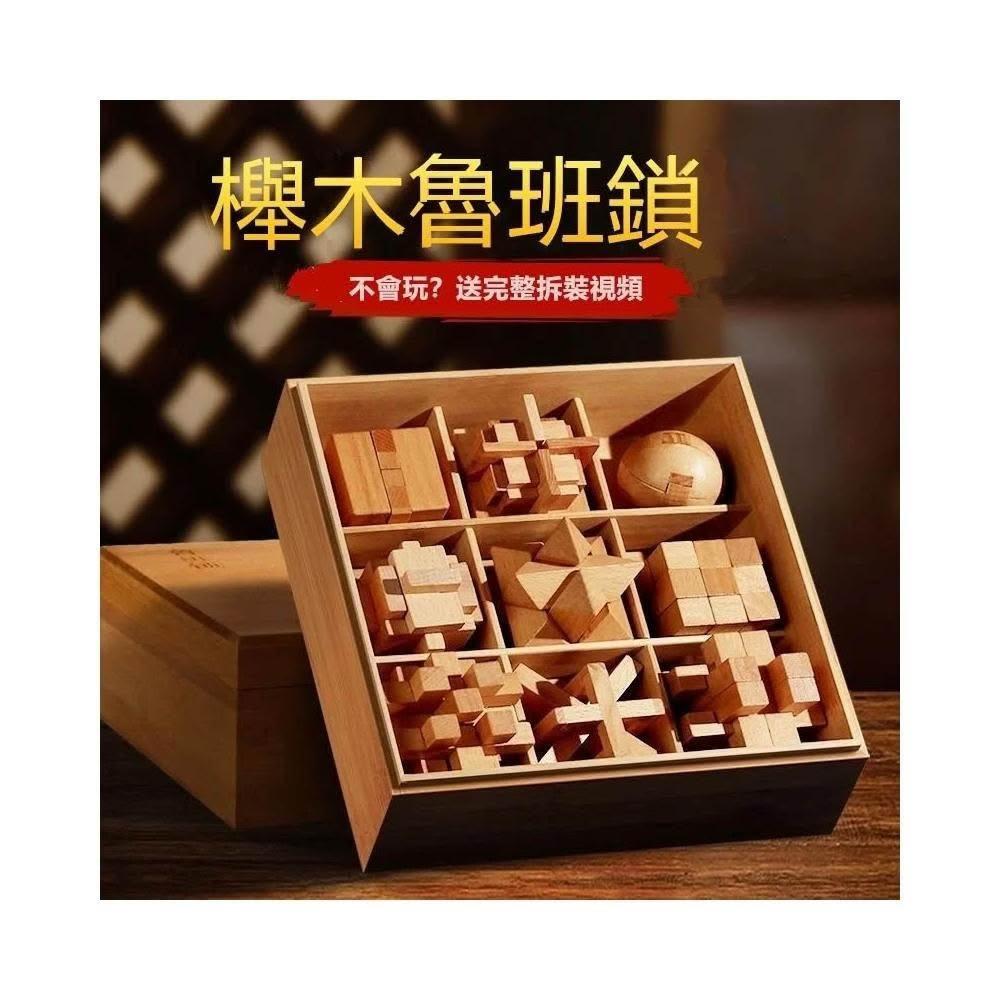 中國中式孔明鎖 櫸木魯班鎖 全套開發智力解環套裝 解連環 魯班鎖 魯班鎖全套玩具 兒童益智玩具 生日 禮物